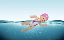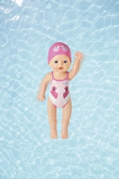 De schattige zwempop BABY born My First Swim Girl van 30 cm is gemaakt om in bad en in het zwembad mee te spelen. Dankzij het waterbestendige design en het lichte lijfje zwemt en beweegt ze in het water, wat de fantasie en fijne motoriek van kinderen vanaf 12 maanden stimuleert. De kleurrijke badpak en badmuts maken haar de ideale vriendin voor dagelijks spetterplezier.
