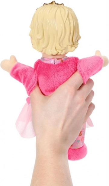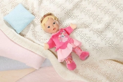 De BABY born for babies prinses is de ideale eerste pop voor baby’s en peuters. Het zachte lijfje nodigt uit om te knuffelen, terwijl het lichte vinyl hoofdje met gouden kroon de speelgoedpop een koninklijke uitstraling geeft. Geïntegreerde zakjes in de handen veranderen de pop in een handpop – steek je vingers erin en begin verhalen te vertellen.