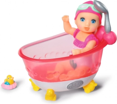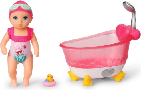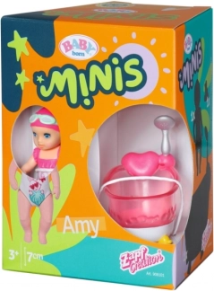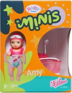 De BABY born Minis Amy-pop van 7 cm in een roze badpak is ideaal voor kleine kinderhandjes en klaar voor wateravonturen.