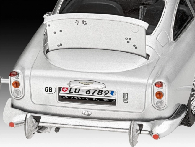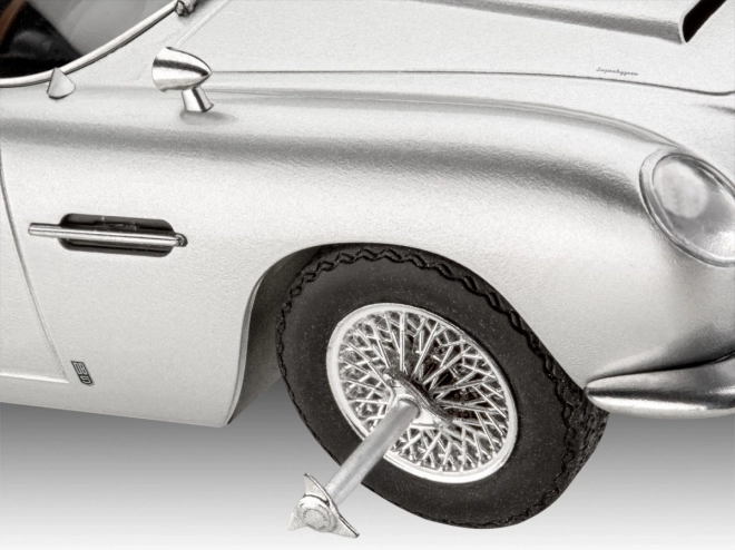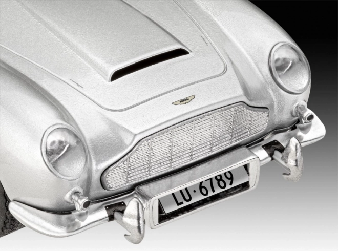 Cadeauset van het model Aston Martin DB5 JAMES BOND 007 Goldfinger 1:24. Complete verpakking met verf, penseel en filmaccessoires – een geweldig cadeau voor fans.