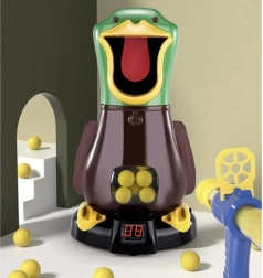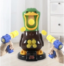 Een leuk schietspel met een eend en een digitale puntenteller dat de oog-handcoördinatie ontwikkelt en voor veel lol en competitie zorgt. Richt en raak de tong van de eend met zachte foam balletjes, die in de buik vallen, en het LCD‑display telt direct een punt bij. In de doos zitten 2 pistolen voor duels en teamspel en 24 foam balletjes voor non‑stop plezier.