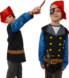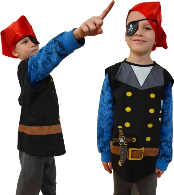 Stap alleen nog aan boord en geniet van een onvergetelijke piratenexpeditie! Met dit kostuum transformeert uw kind snel in een stoere piraat. Het kostuum bevat alle noodzakelijke accessoires: vest, hoofddoek en ooglapje. Een groteske en authentieke look is verzekerd.