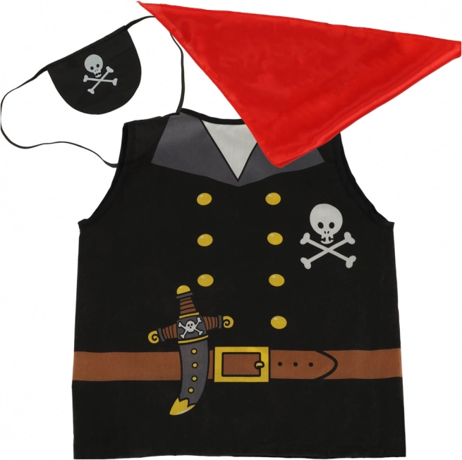 Het kostuum bevat basisitems zoals een vest, hoofddoek en ooglapje die een authentieke piratenlook geven.