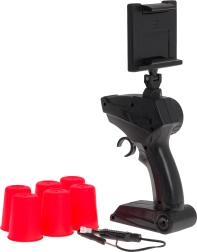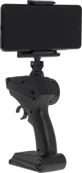 De ergonomische pistoolgrip‑controller zorgt voor een stabiel bereik en nauwkeurige besturing. De geïntegreerde houder bevestigt je smartphone veilig voor comfortabel meekijken.