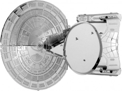 Fijne lijnen, panelen en markeringen zijn nauwkeurig met laser gesneden en gegraveerd, zodat het model het karakter van het legendarische schip uit de Galaxy-klasse natuurgetrouw weergeeft.