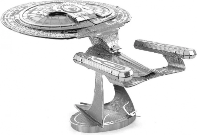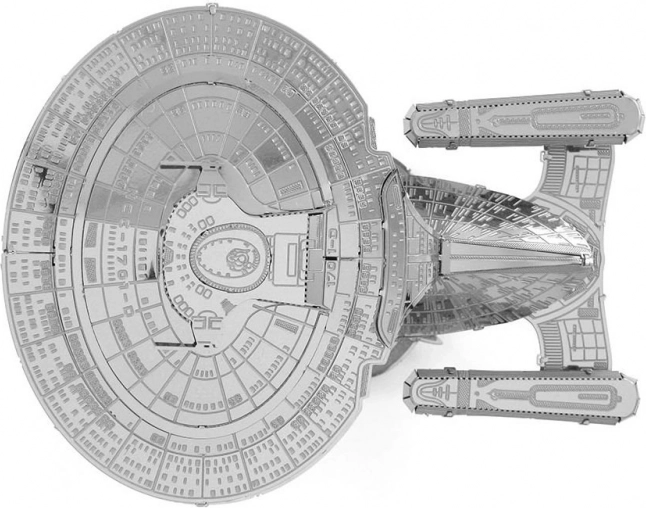 Geniet van een slimme uitdaging en ontspanning met het 3D metalen model van de U.S.S. Enterprise NCC-1701-D uit de METAL EARTH-collectie. Uit roestvrijstalen plaatjes van 11 × 11 cm bouw je het iconische schip uit de Galaxy-klasse, bekend uit de serie STAR TREK: The Next Generation. Dankzij lasergravure komen de fijne details van de romp en de schijfsectie prachtig naar voren.