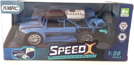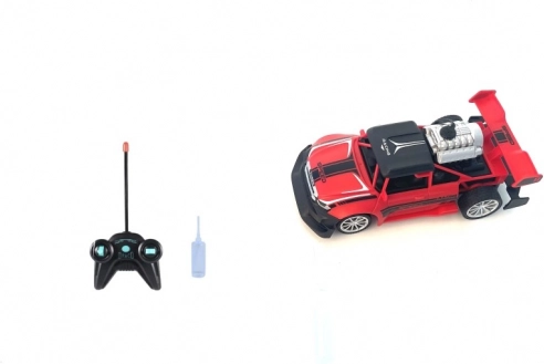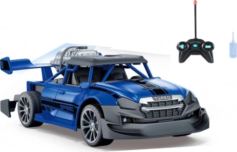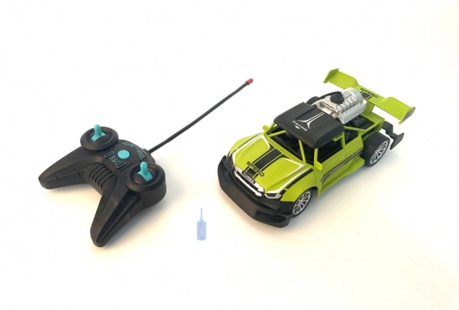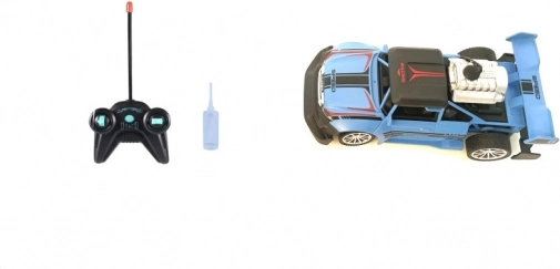 De RC auto is beschikbaar in verschillende kleuren - blauw, groen en rood. Voor zijn functionaliteit zijn AA-batterijen vereist, die niet bij de verpakking zijn inbegrepen.