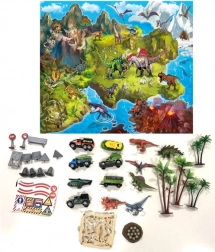 Ontdek de wereld van dinosaurussen met deze geweldige speelset, ontworpen om leuk en educatief spel te bevorderen. Kinderen kunnen hun eigen verhalen en scenario's creëren met plastic dinosaurussen op een grote geïllustreerde kaart.