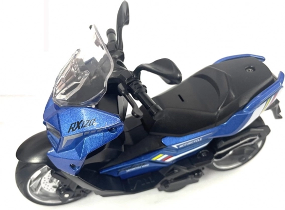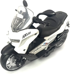 Ontdek de charme van het kleine maar zorgvuldig afgewerkte model van de RX120-motor, perfect voor zowel verzamelaars als kinderen om mee te spelen. Dankzij de realistische elementen oogt hij als een echte motorfiets: van het zadel en het stuur tot aan de bewegende wielen.