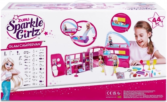 Ga op pad met de ZURU Sparkle Girlz retrocaravan en beleef eindeloze fantasie-avonturen. De caravan klapt open en onthult een keuken, badkamer, eethoek, 2 bedden en zelfs een heerlijk zwembad met glijbaan. Met een openende koelkast, een oven met verrassing en een buitengrill voor stijlvolle picknicks. Te versieren met Sparkle Girlz-stickers. Pop niet inbegrepen.