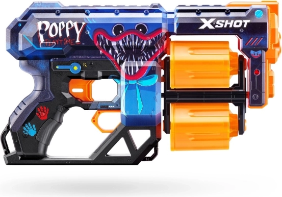 De X-SHOT Skins Dread Jumpscare blaster brengt het plezier tot het maximum. De lichte en duurzame constructie, opvallende graphics en intuïtief laden maken dit pistool tot de ideale keuze voor snelle duels binnen en buiten. De draaibare trommel zorgt voor soepel, opeenvolgend afvuren van darts en houdt het tempo dat jij bepaalt.