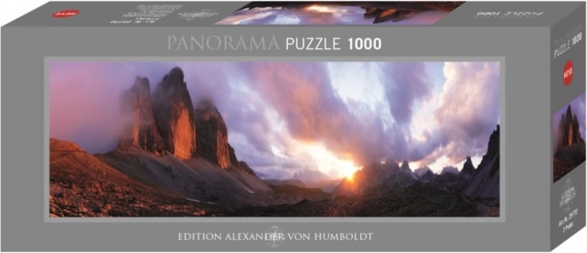 De panoramapuzzel van het merk Heye toont een schitterend uitzicht op de Italiaanse bergen Tre Cime. De Alexander von Humboldt Edition staat bekend om zijn hoogwaardige en gedetailleerde afbeeldingen, die plezier bieden voor het hele gezin.