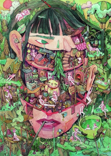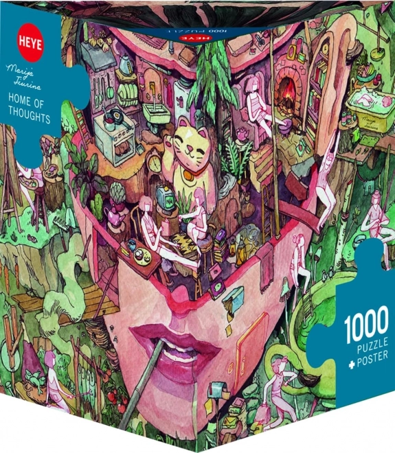Duik in een fantasiewereld met de puzzel Thuis van gedachten van HEYE. De gedetailleerde illustratie van Marija Tiurina biedt talloze kleine verhaaltjes en vindingrijke motieven, waardoor het leggen leuk is en elk stukje in het grotere geheel past. Ideaal voor liefhebbers van beeldende kunst die zowel een esthetische beleving als een uitdaging zoeken.