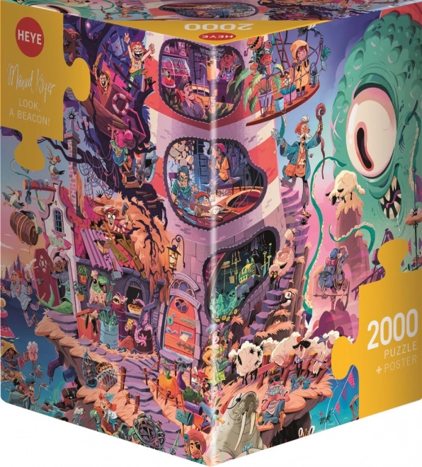 Heye puzzel Kijk, een vuurtoren! 2000 stukjes in een driehoekige doos met poster. Hoge kwaliteit, afmeting na leggen ca. 69 × 97 cm.