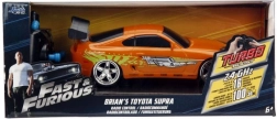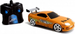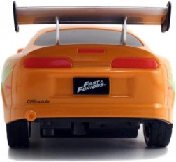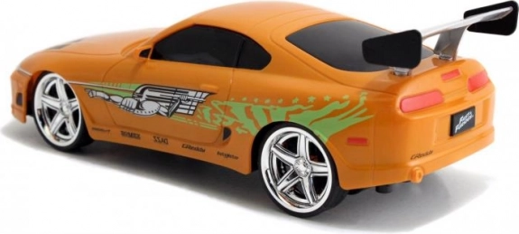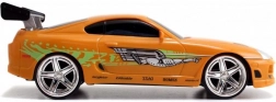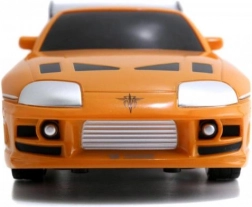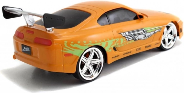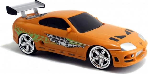 Gedetailleerde oranje Toyota Supra geïnspireerd op BRIANS auto uit FAST & FURIOUS met authentieke bedrukking en achtervleugel.