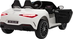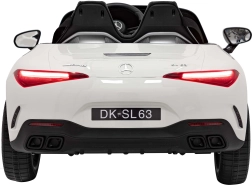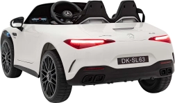 De gelicentieerde elektrische kinderauto Mercedes‑Benz AMG SL63 biedt een realistische rijervaring dankzij vier motoren van 4×35 W, een krachtige 12 V 14 Ah accu en een rijke uitrusting. Hij heeft zachte EVA-banden, een eco-lederen zitje met veiligheidsgordels, LED-verlichting voor en achter en een 2,4 GHz afstandsbediening met noodstopknop. Het multimediapaneel met MP3/USB/AUX/Bluetooth en FM-radio zorgt voor veel plezier tijdens elke rit.