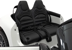 De Mercedes‑Benz AMG SL63 voor kinderen is een stijlvolle cabrio met focus op veiligheid en comfort. Dankzij de soepele startfunctie, achterdempers en de betere doorgang door een grondspeling van 10 cm is de rit vloeiend en stabiel. Besturen kan zowel door het kind met pedaal en stuur als door de ouder via de 2,4 GHz afstandsbediening met drie snelheden en onmiddellijke stop.
