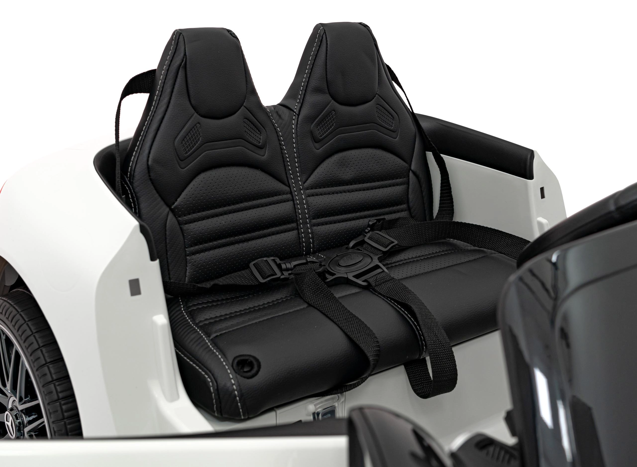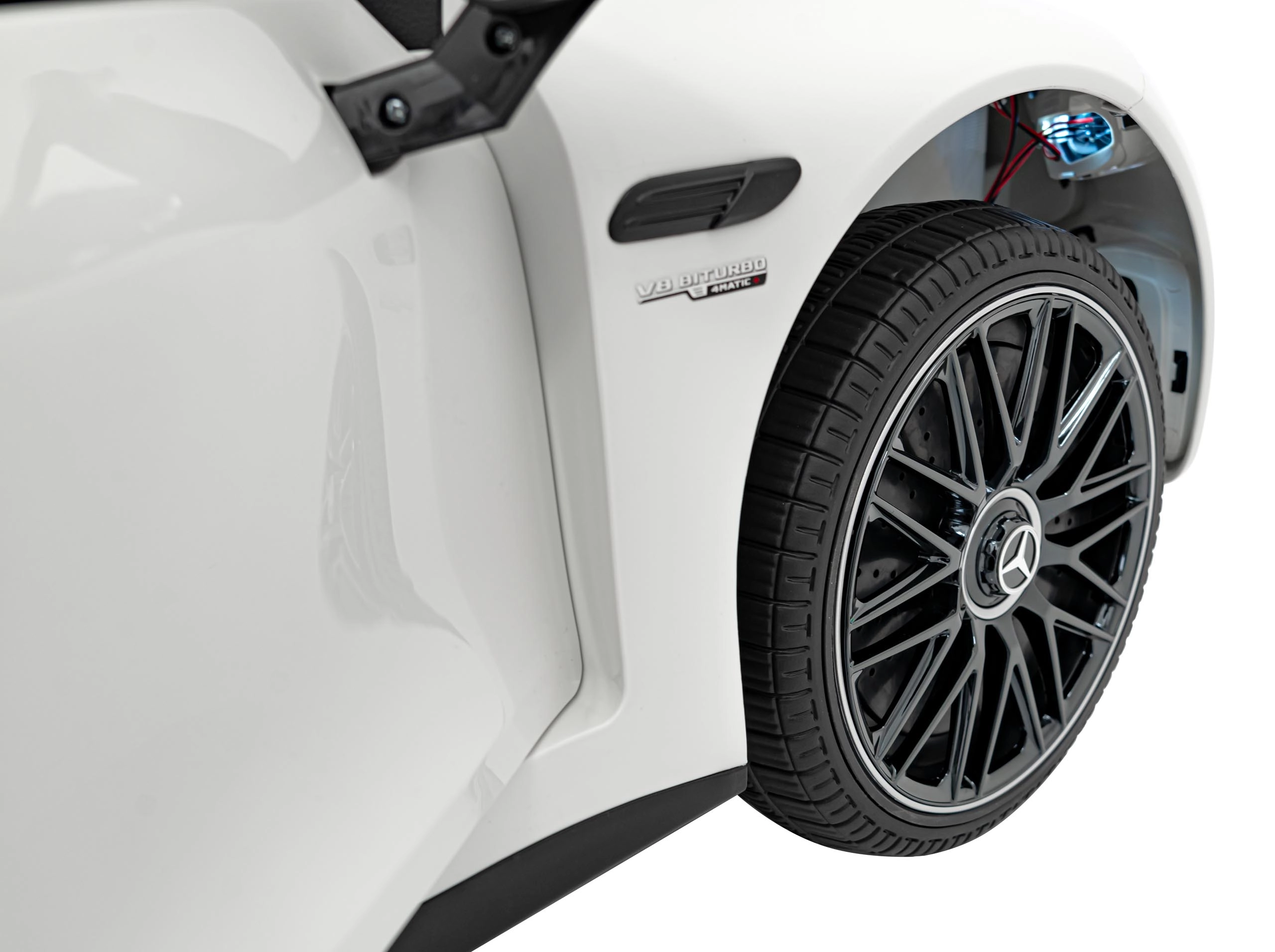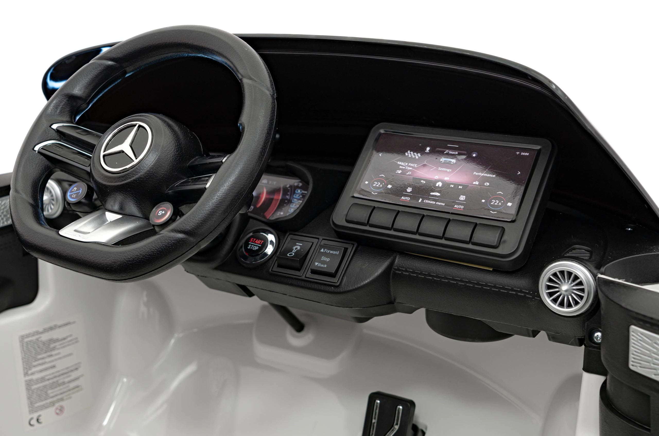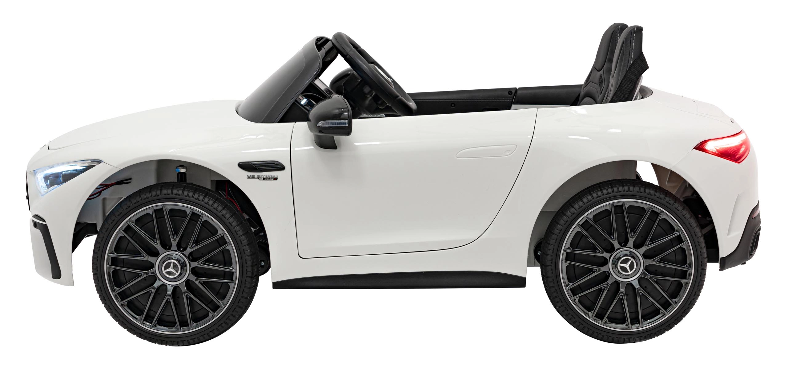 Realistische details zoals deuren die opengaan, startknop met startgeluid, LED-verlichting voor en achter en premium AMG-accenten zullen zowel jonge bestuurders als hun ouders bekoren. Het multimediapaneel biedt MP3, USB, AUX, Bluetooth en FM-radio, plus geluiden op het stuur en een laadindicator.