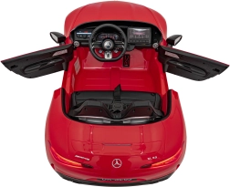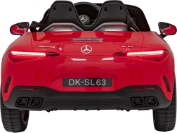 Stijlvolle elektrische kinderauto Mercedes‑Benz AMG SL 63 in het rood met een krachtige 4x35 W aandrijving, 12 V 14 Ah accu, zachte EVA-banden en een gestoffeerde stoel van eco‑leer. Dankzij de 2,4 GHz afstandsbediening met noodknop Stop, soepele wegrijfunctie en LED-verlichting genieten kinderen van een veilige en realistische rit. Het uitgebreide audiopaneel met MP3/USB/AUX, FM-radio en Bluetooth zorgt voor vermaak bij elke rit.