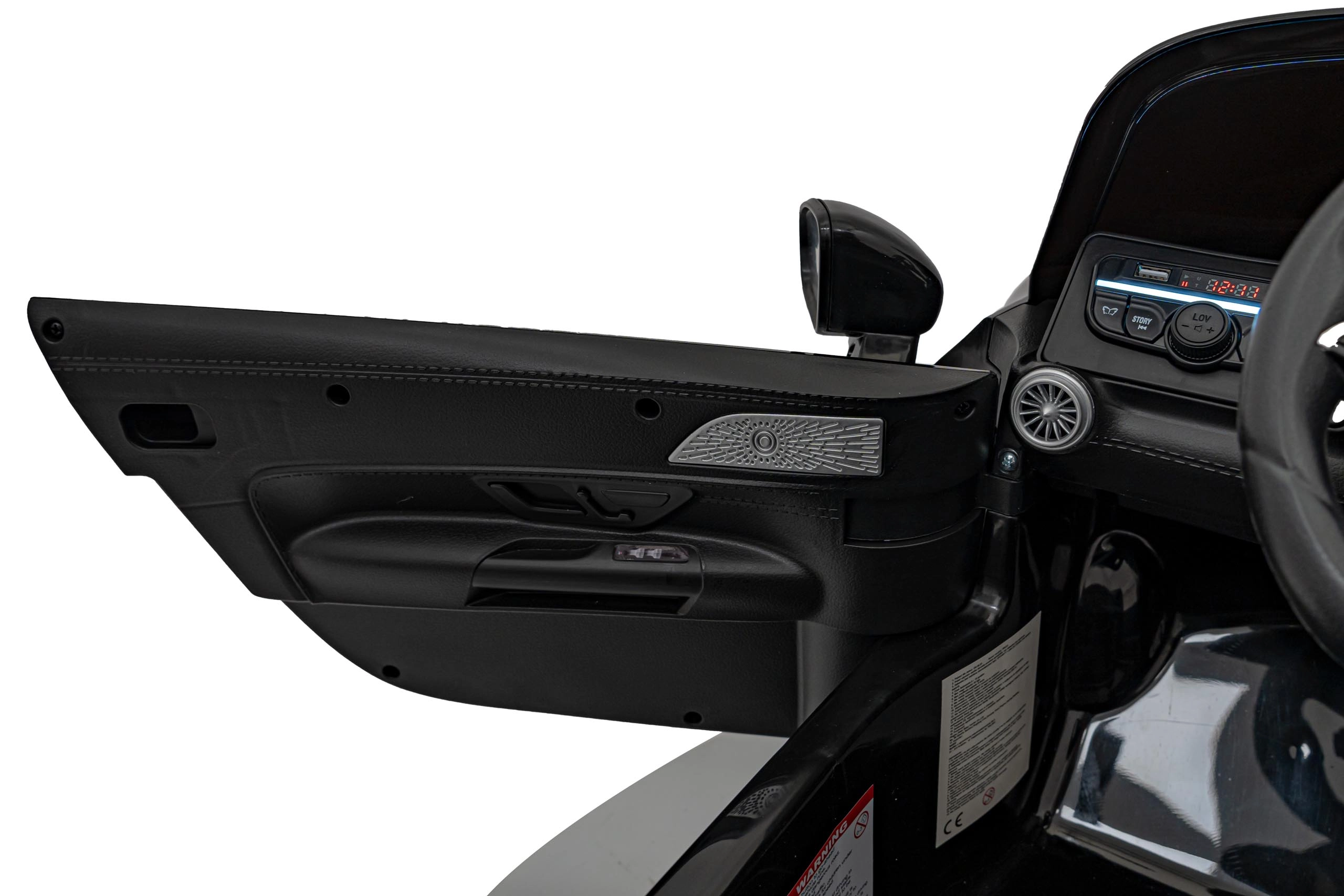 Veiligheid en controle worden gewaarborgd door de ouderlijke 2,4 GHz afstandsbediening met noodknop Stop en keuze uit 3 snelheden. Kinderen genieten van LED‑lichten voor en achter, motorgeluiden bij het starten, openende deuren en een comfortabele eco‑lederen stoel met gordels. Rijke multimedia: MP3, USB, AUX, Bluetooth en FM‑radio – favoriete liedjes altijd binnen handbereik.