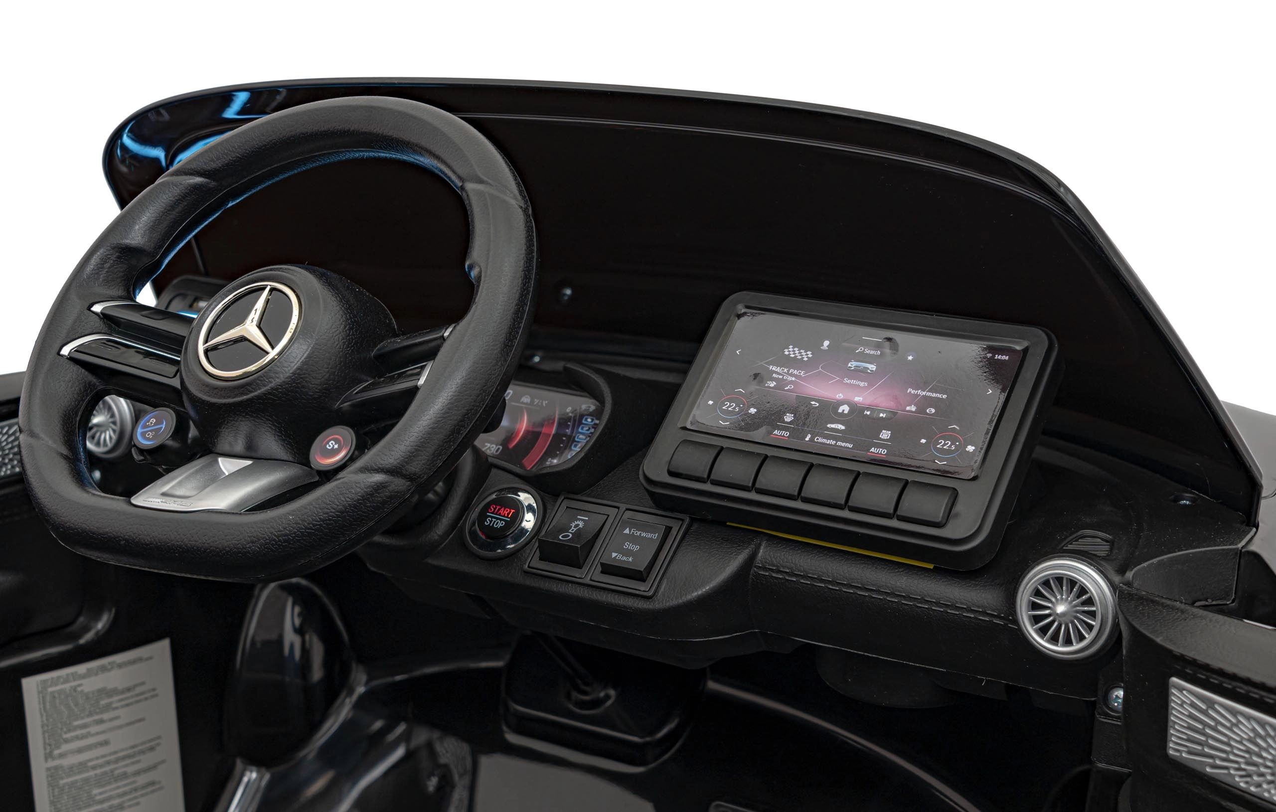 Gulle afmetingen van 123 × 76 × 49 cm, draagvermogen tot 35 kg en een ruime zit (46 × 19 × 25 cm) maken dit model een ideale keuze voor kinderen die realistisch willen rijden in iconische AMG‑stijl.