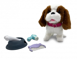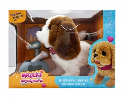 De schattige bruin-witte hond Ťapka uit de serie Knuffeltjes is een interactieve pluchen vriend die kinderen vermaakt en ook iets bijbrengt. Hij loopt, maakt geluiden en kwispelt met zijn staart. In de verpakking vind je een kammetje, een bakje en een botje voor speelse verzorging en de ontwikkeling van verbeeldingskracht, empathie en fijne motoriek.