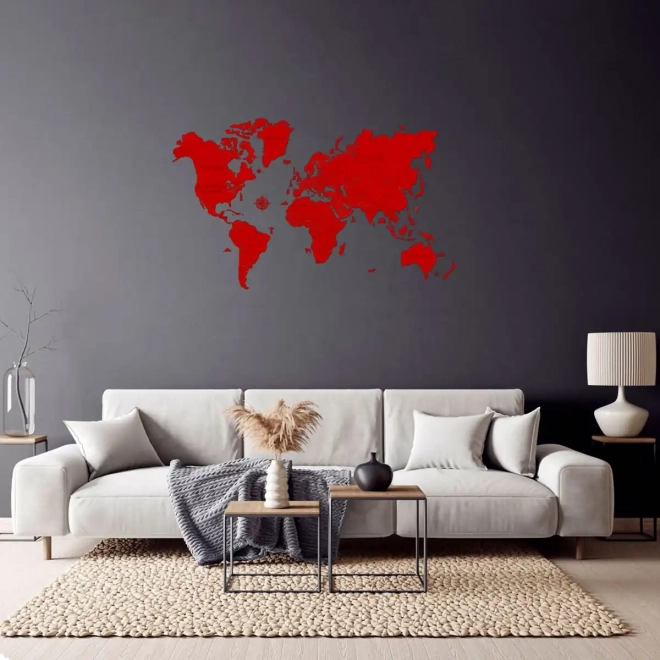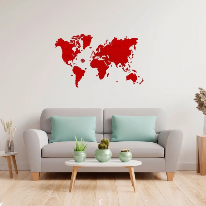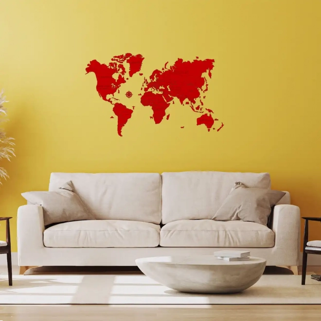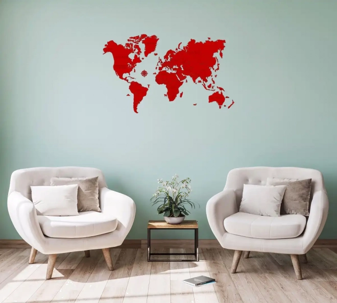 Creëer thuis of op kantoor een opvallend designelement. Deze handbeschilderde houten wereldkaart in het rood biedt strakke lijnen, een moderne look en een eenvoudige installatie met de meegeleverde dubbelzijdige tape. Dankzij het precieze laseruitsnijden uit berkenmultiplex blinkt ze uit in detail en duurzaamheid.