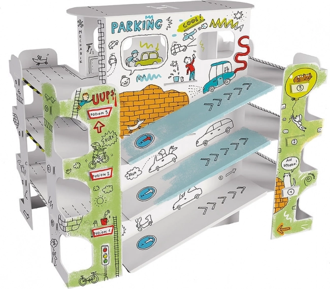 - Creatief 2-in-1: kleurplaat en speelset met meerdere parkeerlagen