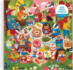 Ontdek een kwaliteitsvolle familiepuzzel met een bos-picknickmotief van illustratrice Christine Chitnis. Dankzij 500 nauwkeurig gesneden stukjes geniet je van een prettige uitdaging en een prachtig resultaat in een vierkant formaat van 51 × 51 cm. Het matte oppervlak vermindert schittering en garandeert getrouwe kleuren en fijne details.