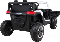 De robuuste elektrische kinderbuggy UTV 2000M biedt 4 motoren van 4×45 W, een krachtige accu 12 V 10 Ah en EVA-schuimbanden voor comfortabel rijden in terrein. Inclusief 2,4 GHz afstandsbediening met Stop-functie, soepele start, LED-verlichting en een uitgebreid audiopaneel met MP3/USB/SD/Bluetooth. De tweezits stoel van eco-leer met gordels en te openen deuren maken dit voertuig een geweldige ervaring voor kleine bestuurders.