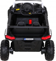 De Buggy UTV 2000M is een krachtige accu-aangedreven kinderauto, ontworpen voor plezier buiten en op de binnenplaats. Dankzij vier motoren en 12 V voeding levert hij betrouwbare tractie, een schokvrije, soepele start en stabiliteit, zelfs op ongelijk terrein. De grote EVA-schuimbanden dempen trillingen uitstekend en de achterdempers vergroten het rijcomfort.