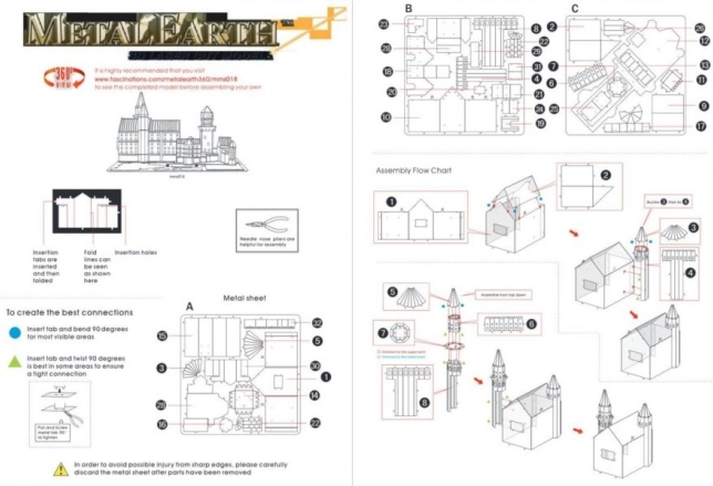Beleef de opwinding met de 3D-puzzel Kasteel Neuschwanstein van Metal Earth. Dit model is een fascinerend en decoratief stuk dat elke liefhebber van historische architectuur zal betoveren. Het is vervaardigd uit gedetailleerde stalen plaatjes die eenvoudig met vergrendelingen aan elkaar te zetten zijn. De verpakking bevat 3 stalen platen en een handleiding, maar gereedschap is niet inbegrepen.