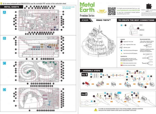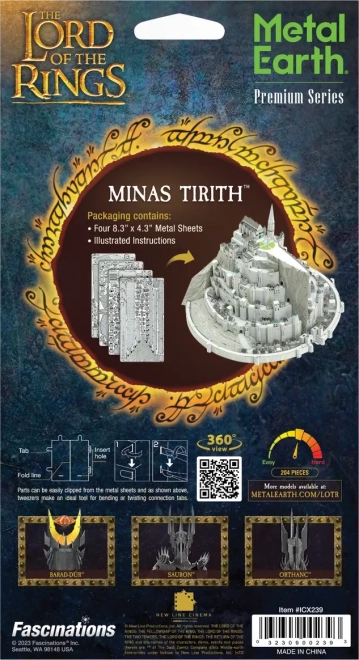 Bouw een adembenemende replica van de stad Minas Tirith uit het universum van In de ban van de Ring. De metalen 3D-puzzel METAL EARTH bestaat uit precies uitgesneden stalen plaatjes met fijne lasergravure die elk architectonisch detail van muren, torens en terrassen benadrukt.