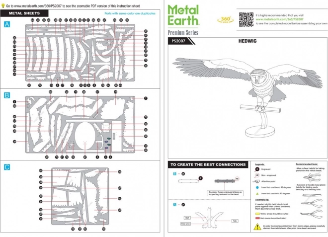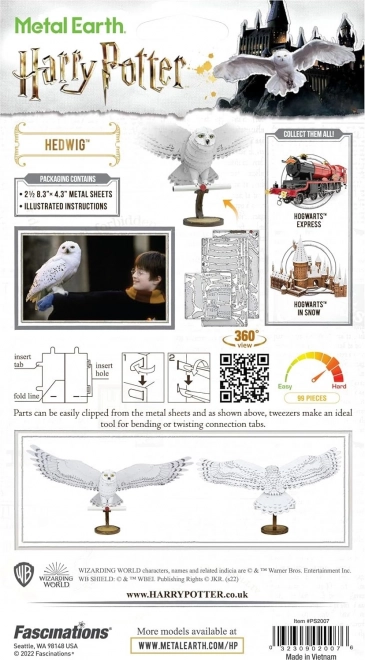 Geniet van het precieze bouwen van het metalen model van Hedwig, de trouwe postuil van Harry Potter. Uit dunne stalen plaatjes met gedetailleerde lasergravure ontstaat stap voor stap een realistische miniatuurreplica met gespreide vleugels en een brief in haar klauwen. De bouw is lijmloos – de afzonderlijke delen worden verbonden met vergrendelingen en gebogen lipjes.