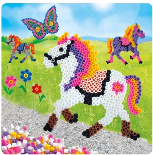 Leg de gekleurde kralen op het meegeleverde kunststof pegboard. Zodra alle kralen op hun plek liggen, vraag je mama of papa om te helpen en kunnen jullie samen het plaatje fixeren.