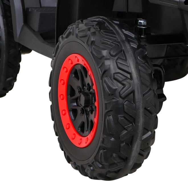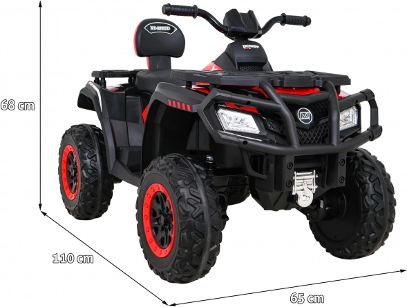 Dankzij het stevige frame en de 4x4-aandrijving kan de quad oneffen terrein aan en zorgt hij voor urenlang veilig plezier.