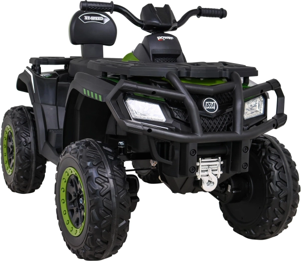 Deze quad is uitgerust met soft start, twee snelheidsstanden en achteruitrijoptie, wat zorgt voor comfortabel en veilig rijden. LED-koplampen en andere gedetailleerde elementen bieden een realistische look, ook in de schemering.