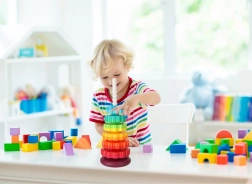 Grote, gemakkelijk vast te pakken onderdelen trainen grijpen, verplaatsen en stapelen. Levendige kleuren nodigen uit tot sorteren op grootte en tint, wat logica, concentratie en creativiteit stimuleert.