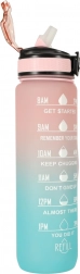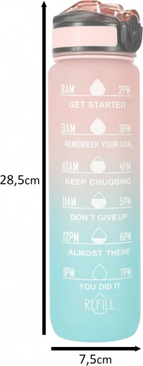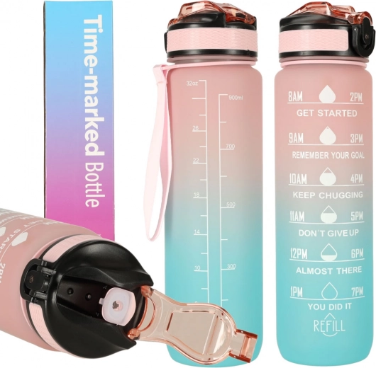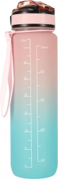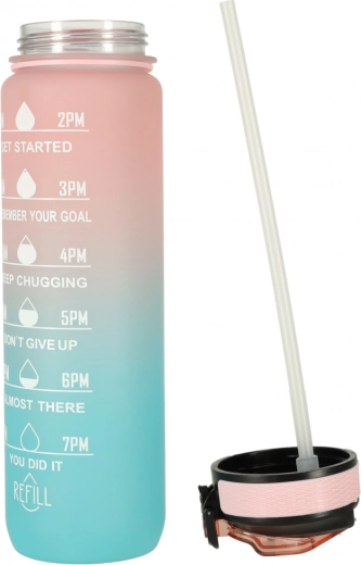 Stijlvolle 1 l Tritan-fles met roze–blauwe gradient helpt je je drinkroutine aan te houden dankzij motiverende tijdsmarkeringen. Heeft een opklapbaar deksel met vergrendeling, een geïntegreerd rietje voor comfortabel drinken zonder kantelen en is gemaakt van licht, duurzaam materiaal zonder BPA.