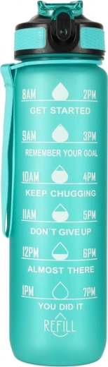 Deze praktische waterfles van 1 liter is ideaal voor werk, school en sport. Dankzij de tijdsmarkeringen met motiverende frases houd je je vochtinname de hele dag onder controle. Het lichte en duurzame design van Tritan zonder BPA ziet eruit als glas, maar is veel beter bestand tegen stoten.