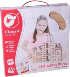 Het houten bouwpakket van het merk Classic World is een perfecte keuze voor alle kleine bouwers. Deze hoogwaardige set bevat 250 stukken die oneindige mogelijkheden bieden voor creatie. Kinderen kunnen bouwen dankzij hun fantasie en hun coördinatie en manuele vaardigheden verbeteren.