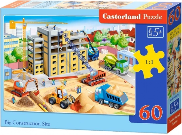 Kleurrijke kinderpuzzel met het thema van een groot bouwterrein biedt zowel veel plezier als leren. Bevat 60 stukjes en vormt na het leggen een afbeelding van 32 × 23 cm. Dankzij de hoge kwaliteit en de bonte illustraties trainen kinderen hun fijne motoriek, concentratie en geduld.