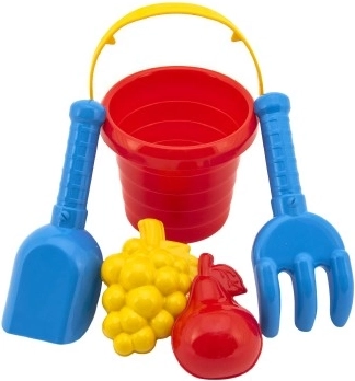 Deze zandset bevat een gekleurde emmer, schep, hark en twee vormpjes, die perfect zijn aangepast aan kleine kinderlijfjes. Gemaakt van hoogwaardig en duurzaam plastic, dat langdurig meegaat zelfs tijdens ruig zandspel.
