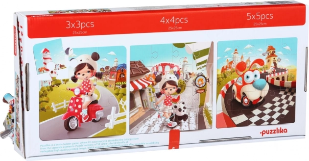 Puzzlika Gelukkige Verhalen 3 in 1 is een geweldig leuke puzzel speciaal ontworpen voor jonge kinderen. Elke set bevat 50 stevige en duurzame stukjes waarmee je drie aparte afbeeldingen van 25 x 25 cm kunt maken. Elke afbeelding heeft een ander aantal stukjes: 3x3, 4x4 en 5x5. De puzzel is gemaakt van hoogwaardige meerlaags karton met een glanzend oppervlak, geproduceerd van ecologisch geteeld hout. De puzzel kan eenvoudig worden gereinigd met een vochtige doek.