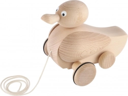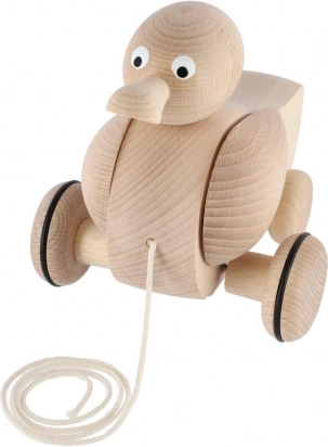 Een schattige trek-eend van natuurlijk hout die elk kind plezier geeft dat zijn eerste stapjes zet. Tijdens het trekken wiegt de eend en beweegt hij met zijn kop, wat coördinatievaardigheden ondersteunt en op een natuurlijke manier motiveert om te lopen. De hoogwaardige houten afwerking en het tijdloze design maken het tot een ideale speelgoedkeuze voor dagelijks spelen.