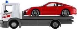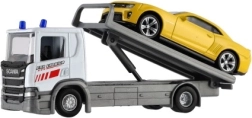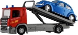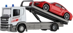 Het model van de sleepwagen en auto levert een realistische visuele indruk en is gemaakt van metaal en kunststof.