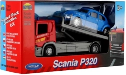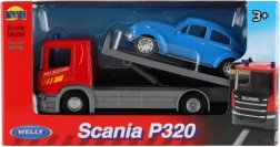 Betreed de wereld van plezier met het model van de Welly Scania P320 sleepwagen en bijgevoegd voertuig, ideaal voor kleine autoliefhebbers.
