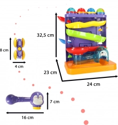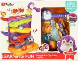 De interactieve knikkerbaan met een schattige pinguïn is een geweldige keuze als eerste technische speelgoed. Kinderen plaatsen de knikkers in de bovenste openingen en “schieten” ze veilig de baan op met behulp van het hamertje. Kleurrijke banen en soepele afdalingen zorgen voor veel plezier en ondersteunen geduld en concentratie.