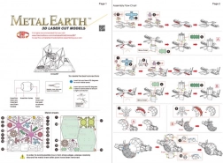 Haal de afzonderlijke onderdelen uit de metalen plaatjes; gebruik indien nodig kleine zijsnijtangetjes (niet inbegrepen). De onderdelen worden met elkaar verbonden door vergrendelingen die bestaan uit een lipje en een opening. Buig het lipje om met behulp van kleine, dunne tangetjes (niet inbegrepen) en verbind stap voor stap alle vergrendelingen totdat er een zeer realistisch meesterwerk ontstaat!