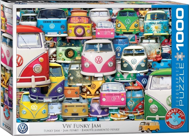 Ontdek een meeslepende uitdaging: de EUROGRAPHICS-puzzel met het motief Volkswagen Bus: Funky Jam biedt een gedetailleerde illustratie en onconventionele vormen van de stukjes die het standaard raster doorbreken. Elk stukje past precies, maar de ongebruikelijke vormen vergroten de spanning en de voldoening bij elke juiste aansluiting.